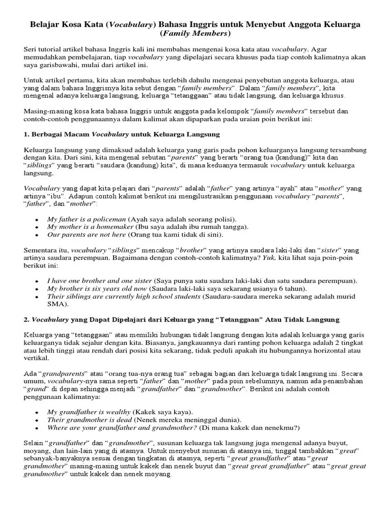 Banyak kosa kata yang berhubungan dengan keluarga yang dapat membantu dalam belajar bahasa inggris.